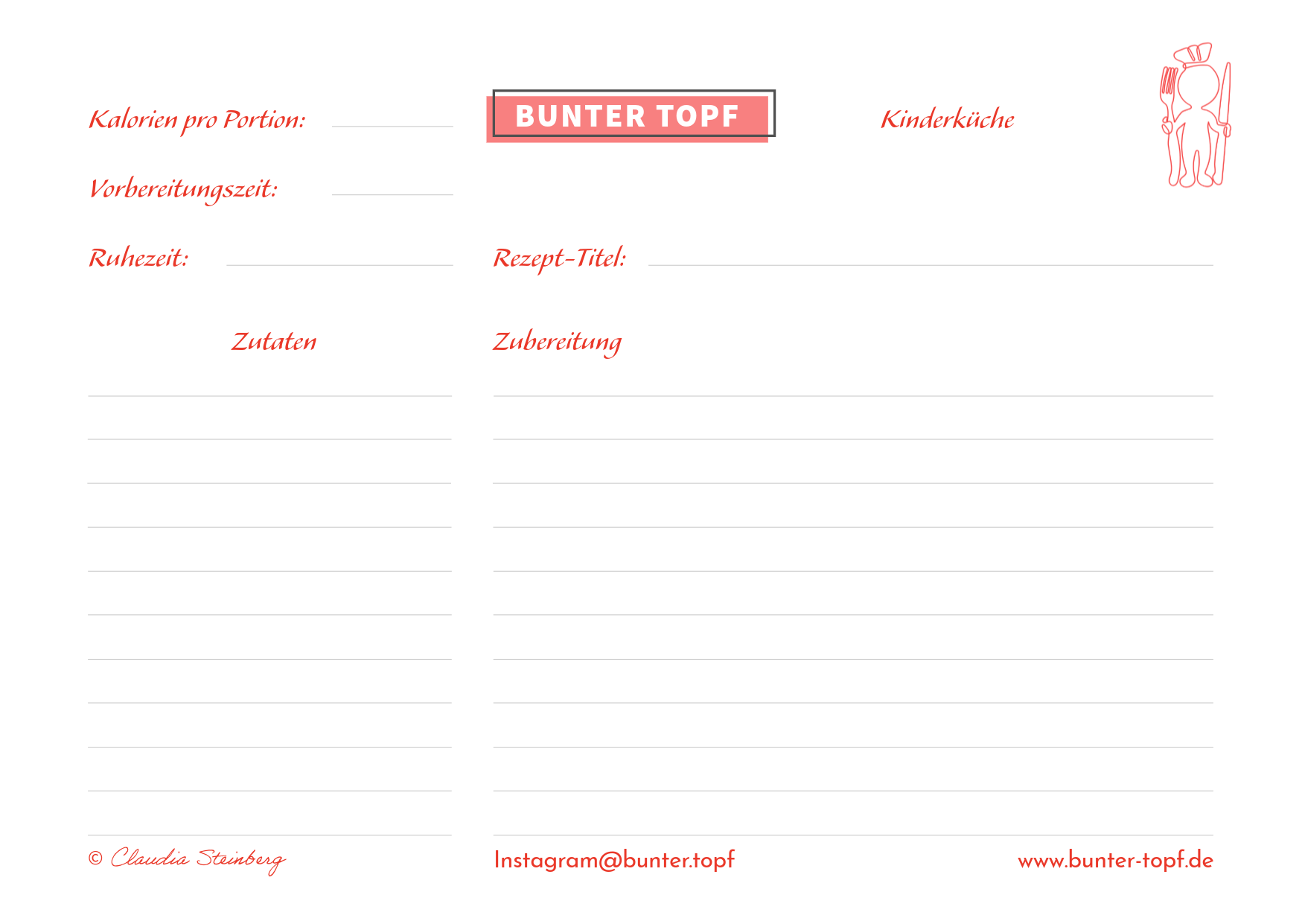 Rezeptkarte rot blanko Kinderküche