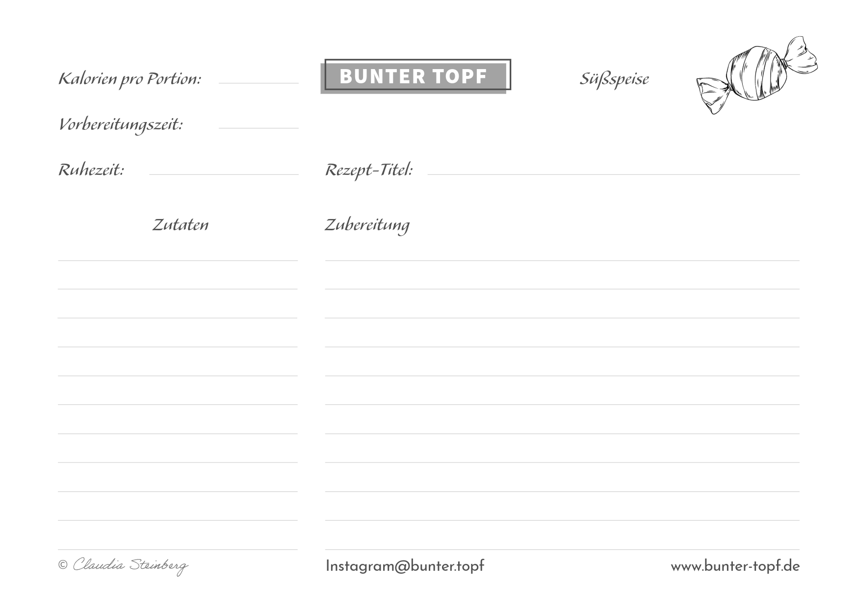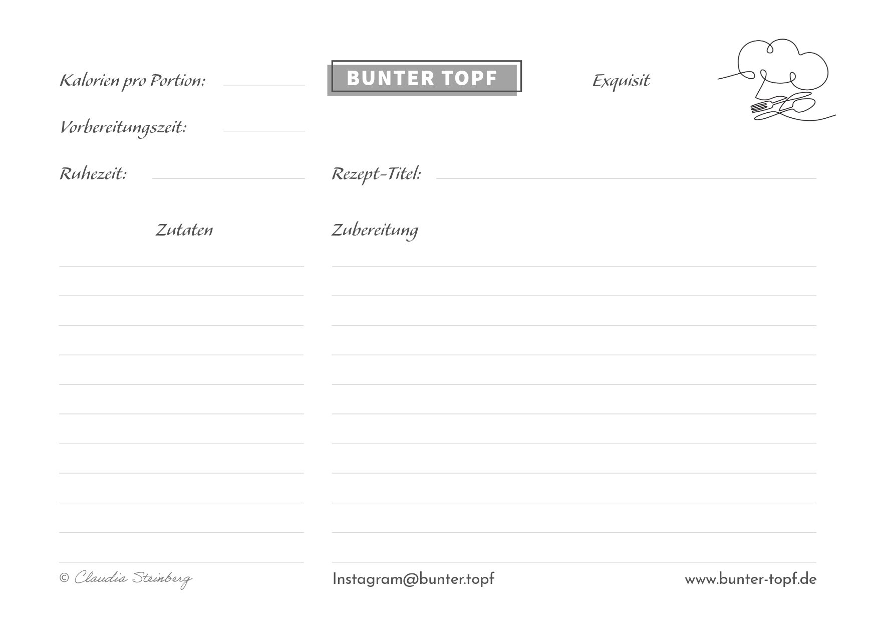 Rezeptkarte schwarz/weiß blanko Eintopf