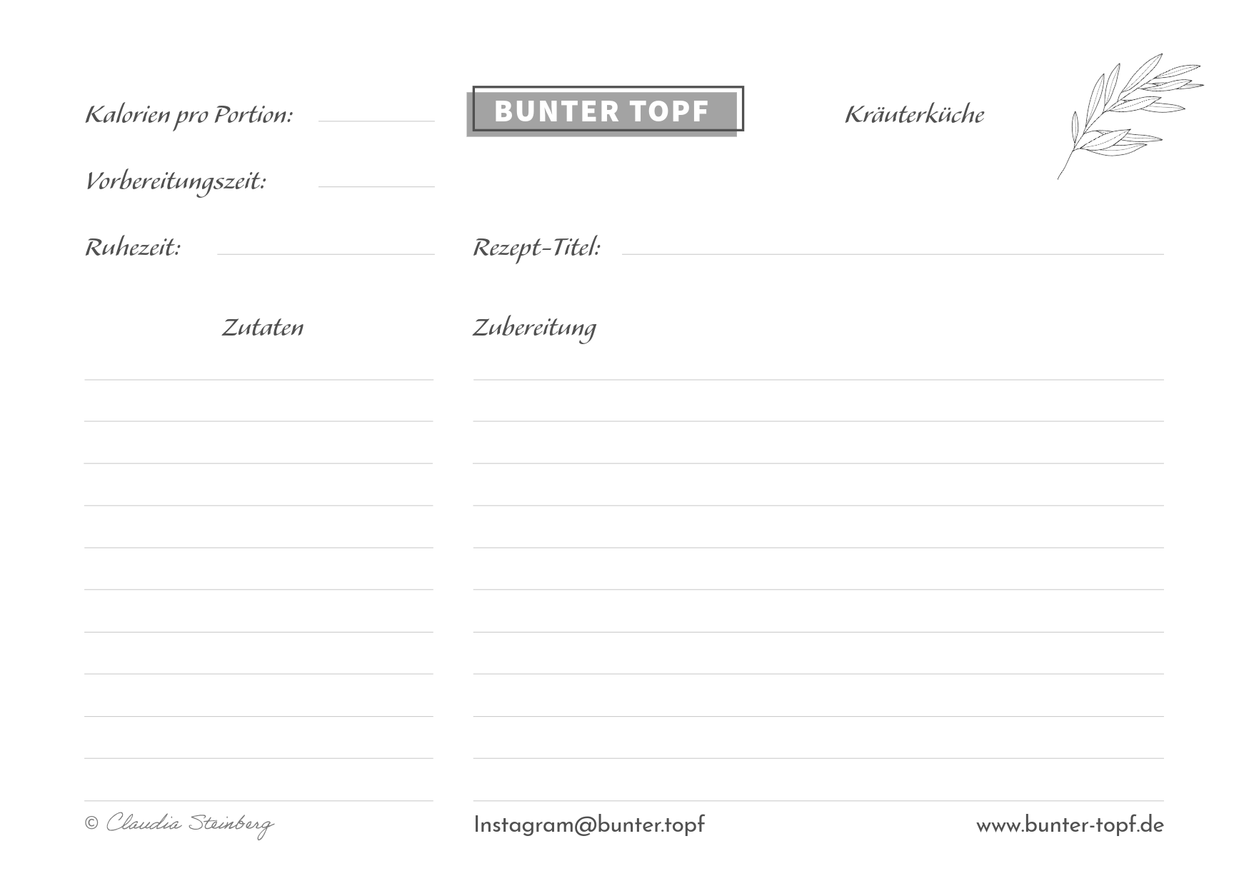 Rezeptkarte schwarz/weiß blanko Kräuterküche