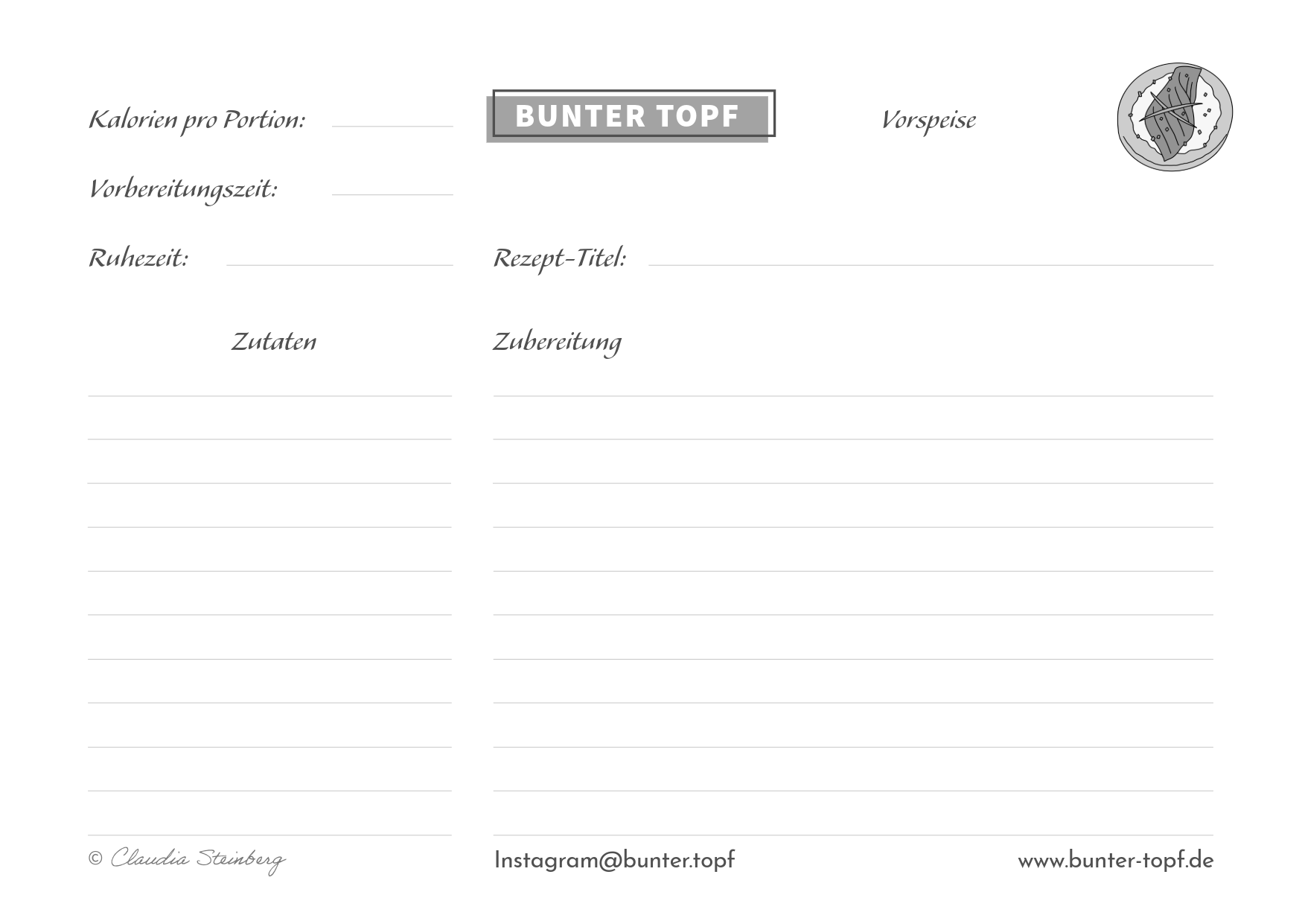 Rezeptkarte schwarz/weiß blanko Vorspeise
