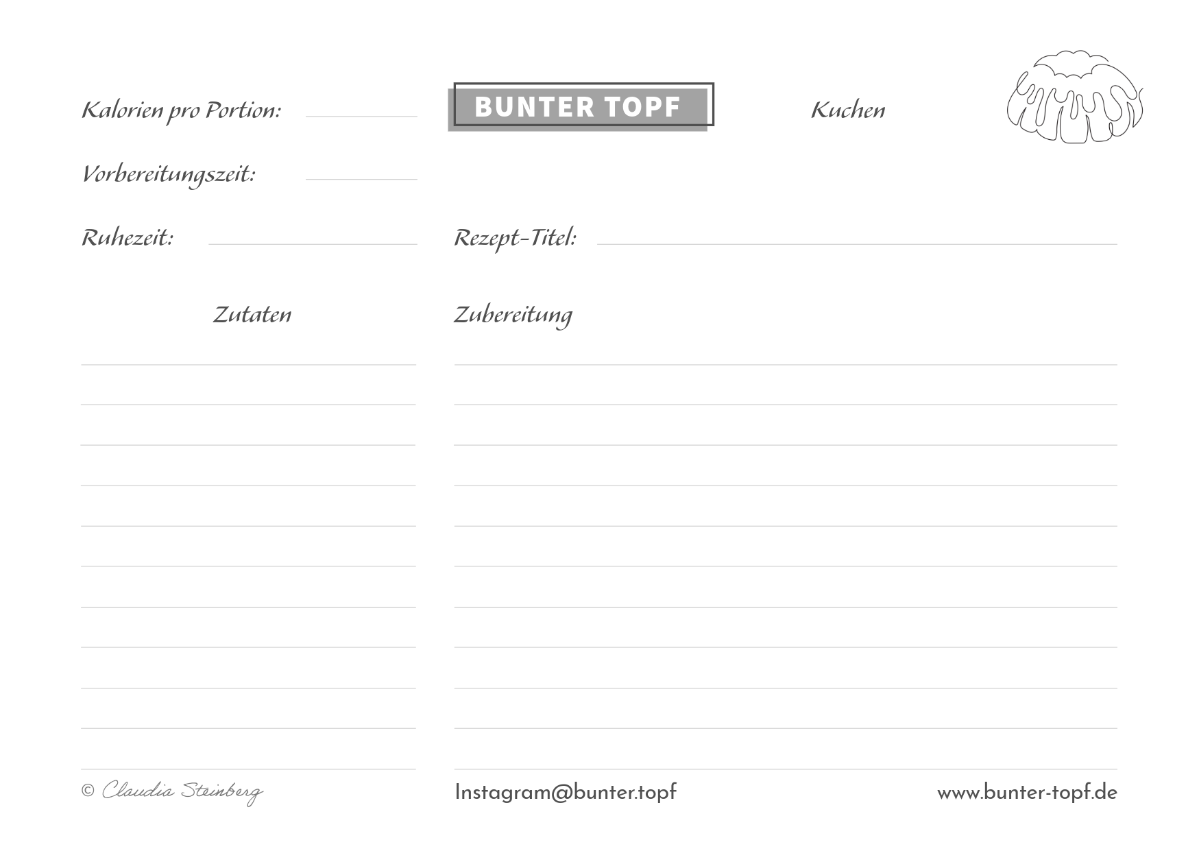 Rezeptkarte schwarz/weiß blanko Kuchen